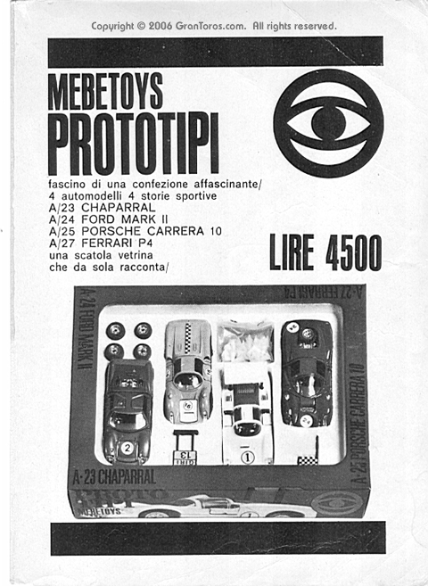 Advertisement for the Mebetoys "prototype racers" set which