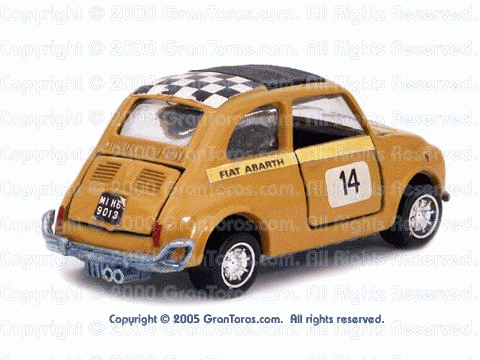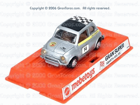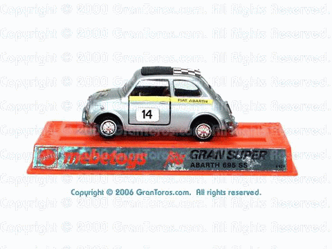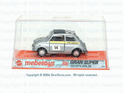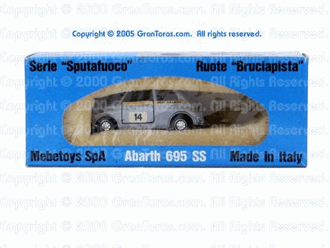 Gran Toros Abarth 695 ss in 3rd generation European packaging. Note that this is the Mebetoys Gran Super packaging. |