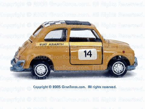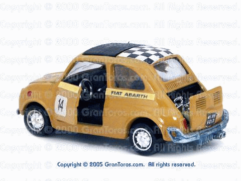 A very rare black interior Gran Toros Abarth 695ss with complete stickers/decals. This color is sometimes called "gold" or "yellow." I think it's better described as "yellow ochre." |