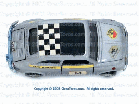 Top view of a silver Gran Toros Abarth 695 ss with black interior. |