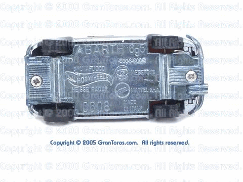 This base on this silver Gran Toros Abarth 695ss has the Hot Wheels or Mattel logos. |