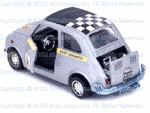 Black interior silver Gran Toros Abarth 695ss with open door and engine compartment. |