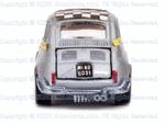 Rear quarter view of a black interior silver Gran Toros Abarth 695ss. |