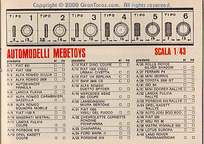 catalog shows the 1969 Pre-Mattel Mebetoys models. Some of these