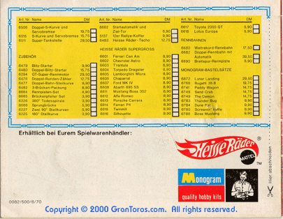 The 1970 Heisse Räder International Collector's Catalog back cover. |