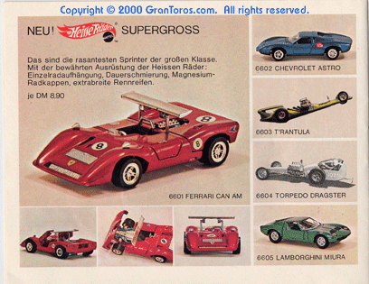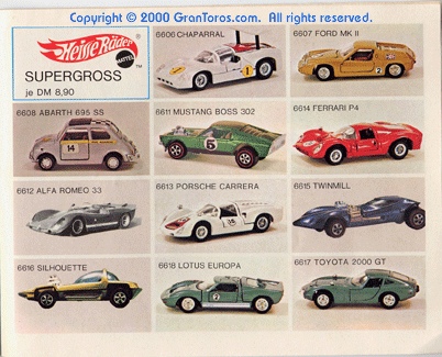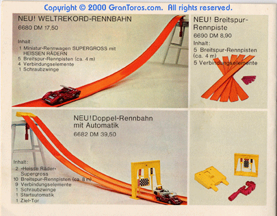 This page shows the 1970 Mattel German Heisse Räder (Hot Wheels) International Catalog. Due to the size of the catalog, this page only shows the Hot Wheels Gran Toros / Sputafuoco / Heisse Räder Supergross, and Mebetoys pages.