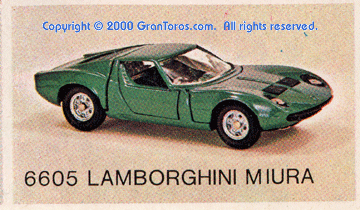 The Lamborghini Miura picture is of the Mebetoys Model #A-20 model.