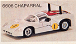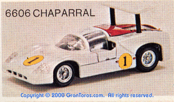 The Chaparral picture is of a Mebetoys Model #A-23. Note the rubber wheels and lack of "Spring-Bar" suspension. |