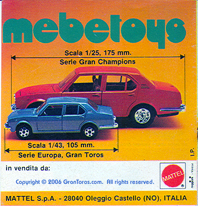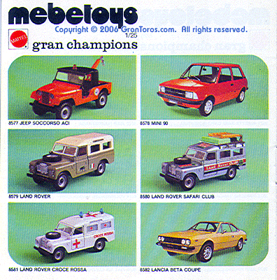 Mebetoys models listed as Series Gran Toros. Note that none of