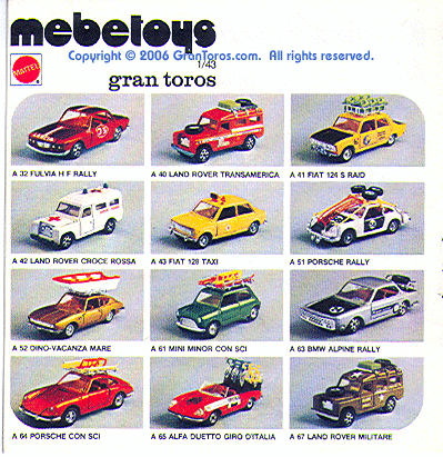 1 of the mid-1970s Italian Mebetoys catalog showing the following