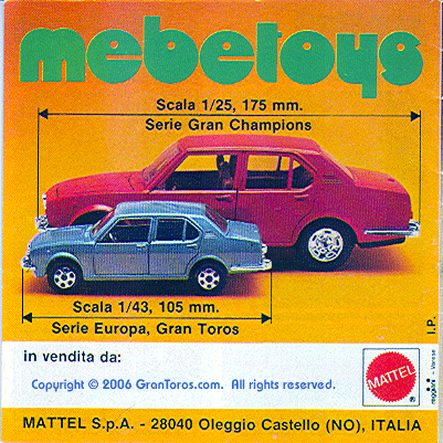 back cover of the mid-1970s Italian Mebetoys catalog. |