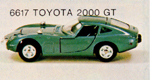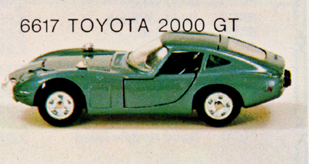 The Toyota 2000GT picture is of Mebetoys model #A-29. Note the rubber wheels and lack of "Spring-Bar" suspension. |