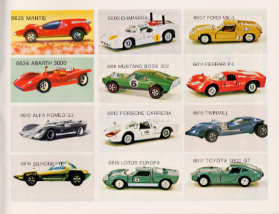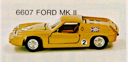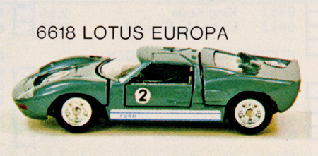 The Ford Mk II picture is of Mebetoys model #A-24. Note the rubber wheels and lack of "Spring-Bar" suspension. In addition it is labeled incorrectly as #6618 Lotus Europa.