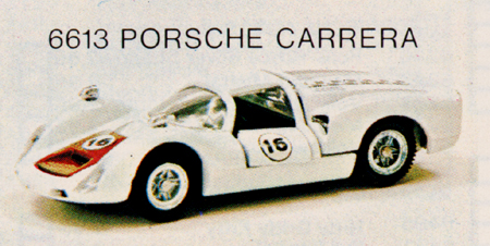 The Porsche Carrera picture is of Mebetoys model #A-25. Note the rubber wheels and lack of "Spring-Bar" suspension. |