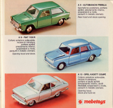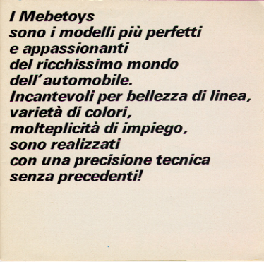 The inside of the 1972 Italian Mebetoys Catalog front cover