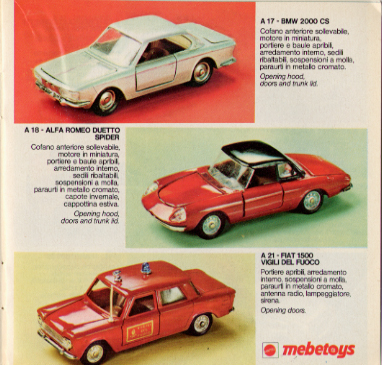 introductory page of the 1972 Italian Mebetoys Catalog.
