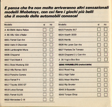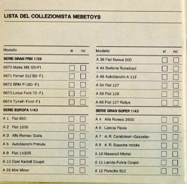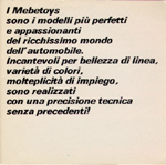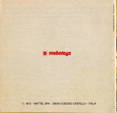 back cover of the 1972 Italian Mebetoys Catalog. |