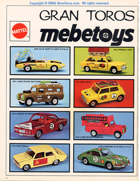 This page is an index for the 1974 Italian dealer's catalog. Due to the size of the catalog, we only display the Gran Toros, Sputafuoco, Heisse Räder, Hot Wheels, and Mebetoys related pages. |