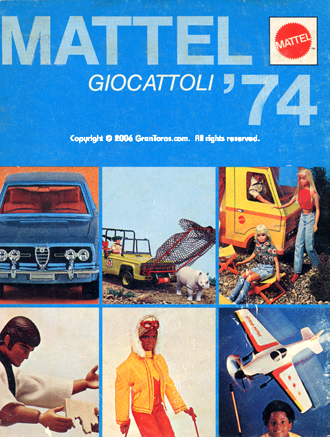 The front cover of the 1974 Mattel Italian Giocattoli Dealer's catalog.