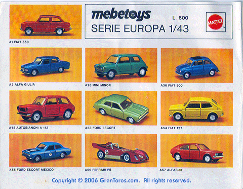 3 of the 1974 Italian Mebetoys catalog showing the following