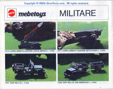showing hte following Mebetoys military models: