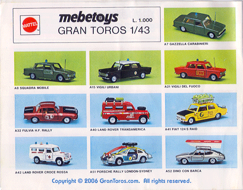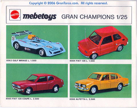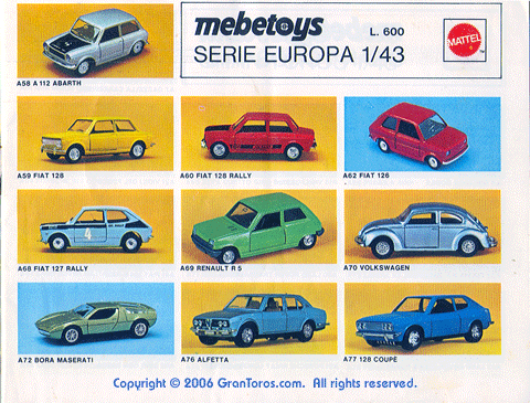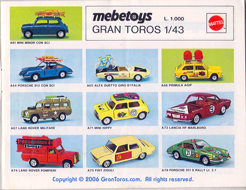 1 of the 1974 Italian Mebetoys catalog showing the following