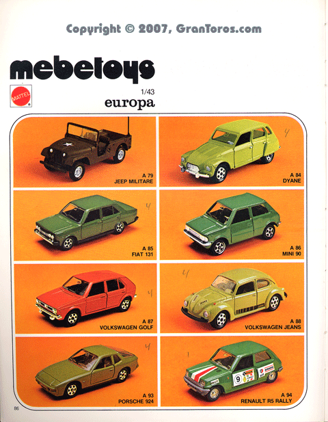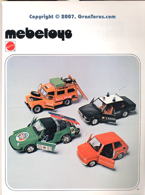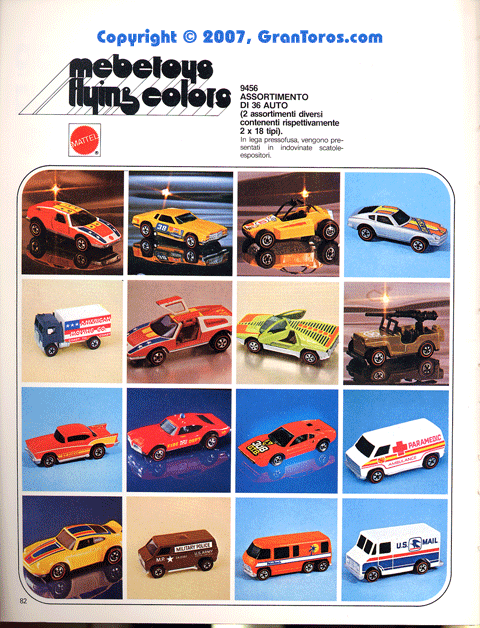 Page 82 of the 1978 Italian Dealer's catalog 1/64 scale Mebetoys Flying Colors (Hot Wheels).
