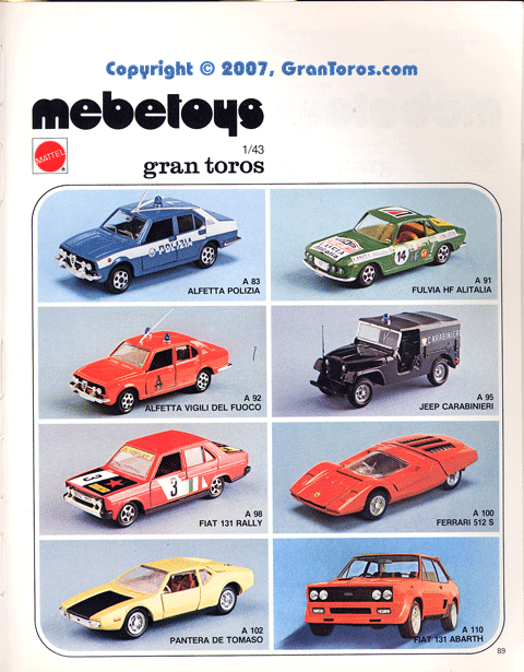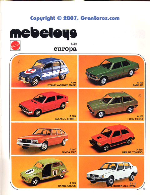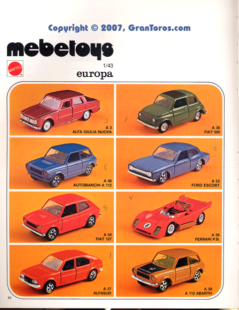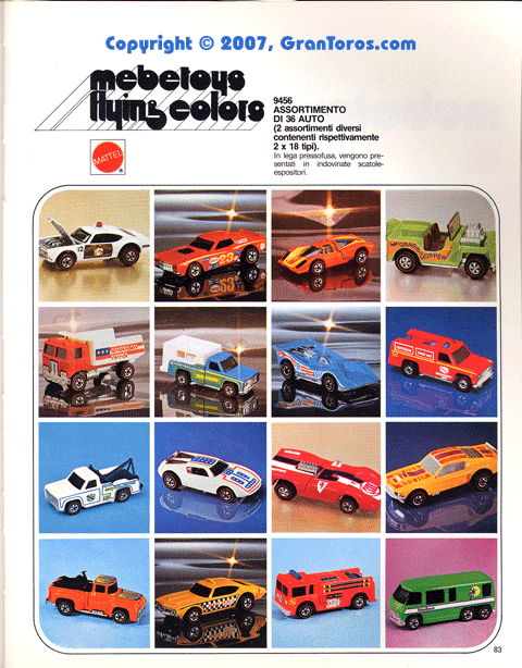 Page 83 of the 1978 Italian Dealer's catalog 1/64 scale Mebetoys Flying Colors (Hot Wheels).