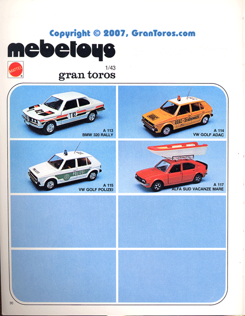 Page 90 of the 1978 Italian Dealer's catalog showing the following"Gran Toros" models (note that none of these models are Hot Wheels Gran Toros):