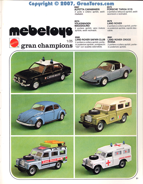 Page 81 of the 1978 Italian Dealer's catalog showing the following 1/25 scale Mebetoys Gran Champions models: