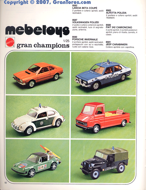 Page 92 of the 1978 Italian Dealer's catalog showing the following 1/25 scale Gran Champions models: