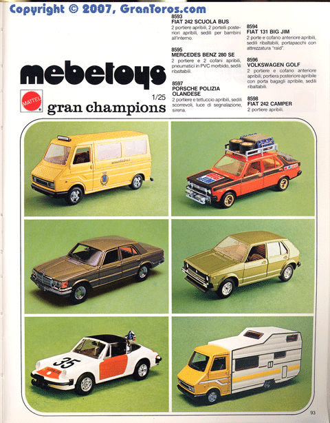 Page 93 of the 1978 Italian Dealer's catalog showing the following 1/25 scale Gran Champions models: