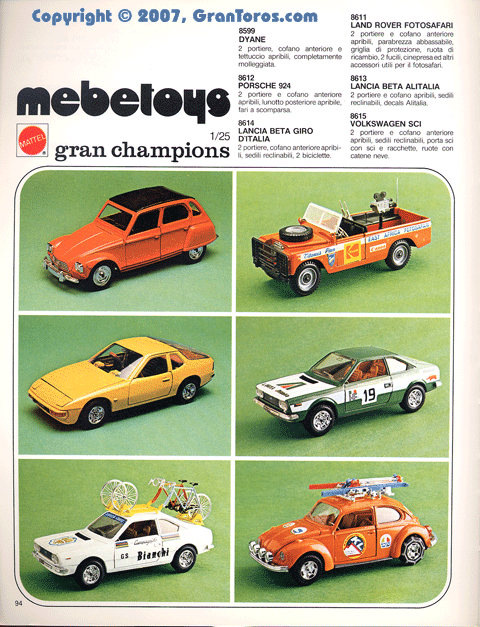 Page 96 of the 1978 Italian Dealer's catalog showing the following 1/25 scale Gran Champions models: