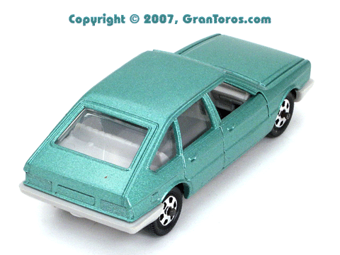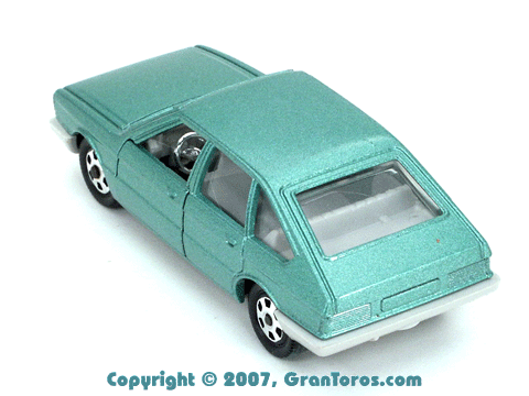 top rear quarter view of a Mebetoys Simca 1307 / 1308, Model #A-107. |