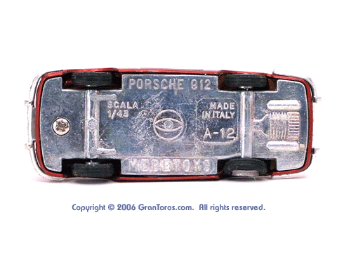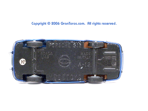 bottom of a Mebetoys Porsche 912, Model #A-12 showing the markings. |