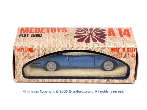 top front quarter view of a Mebetoys Fiat Dino, Model #A-14. |