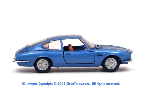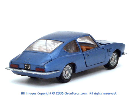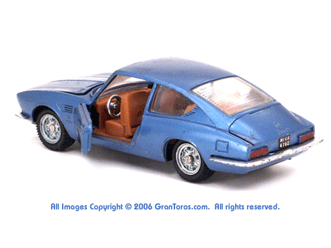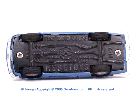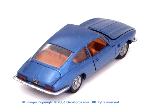 top rear quarter view of a Mebetoys Fiat Dino, Model #A-14. |