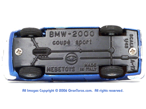 bottom of a Mebetoys BMW 2000 CS, Model #A-17 showing the markings. |