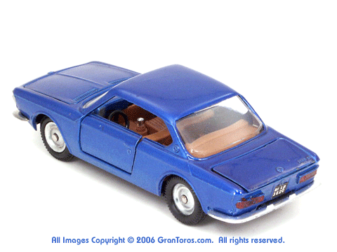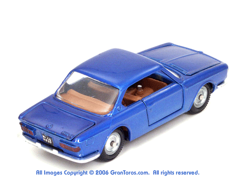 top rear quarter view of a Mebetoys BMW 2000 CS, Model #A-17. |