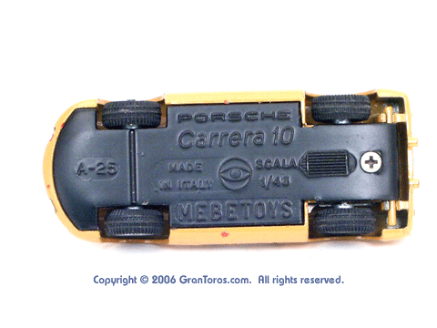 view of a Mebetoys Porsche Carrera 10, Model #A-25, showing the