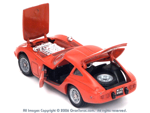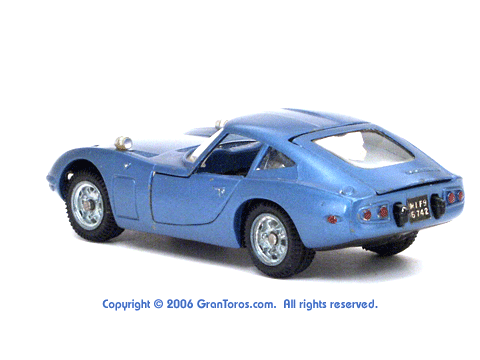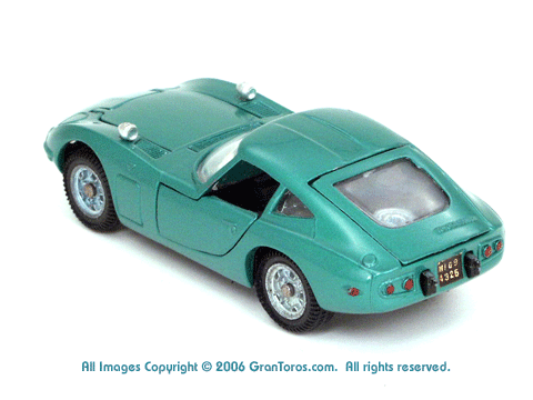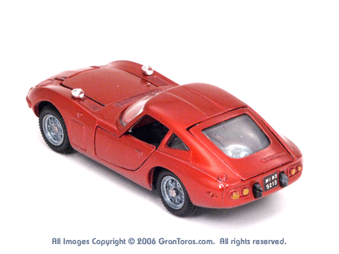 rear top quarter view of a Mebetoys Toyota 2000GT, Model #A-29,