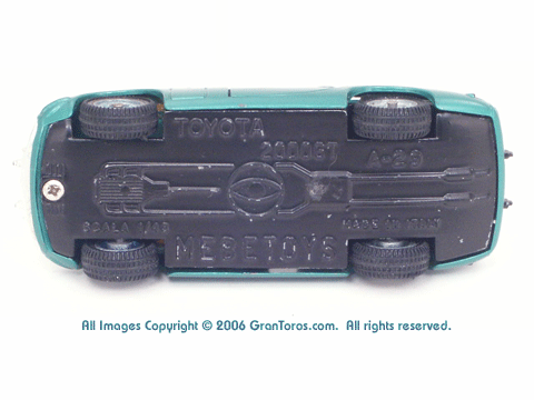 view of a Mebetoys Toyota 2000GT, Model #A-29, showing the markings. |