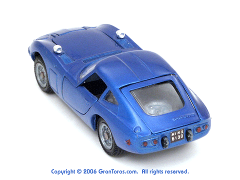 rear top quarter view of a Mebetoys Toyota 2000GT, Model #A-29. |