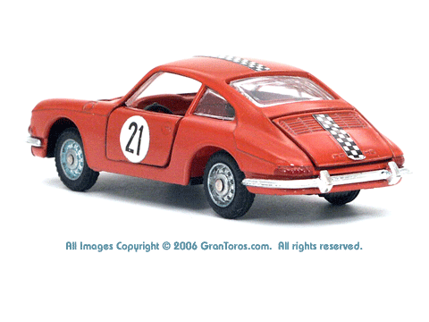 rear quarter view of a Mebetoys Porsche 912 Rallye, Model #A-33. |