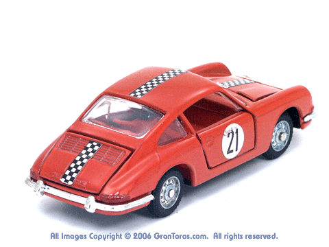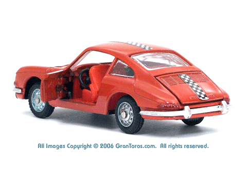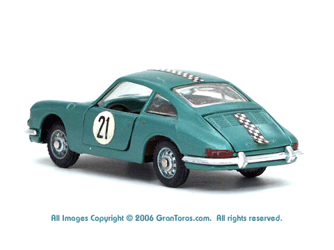 rear top quarter view of a Mebetoys Porsche 912 Rallye, Model