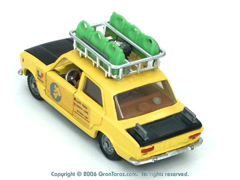 Right rear quarter view of a Mebetoys Fiat 124 S Raid, Model #A-41. |