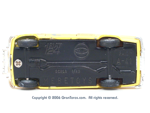 Bottom of a Mebetoys Fiat 124 S Raid, Model #A-41, showing the markings. |