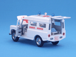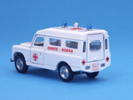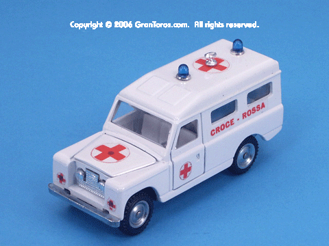 Left rear quarter view of a Mebetoys Land Rover Croce Rossa, Model #A-42.