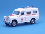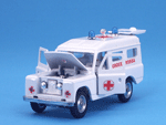 Left front top quarter view of a Mebetoys Land Rover Croce Rossa, Model #A-42.