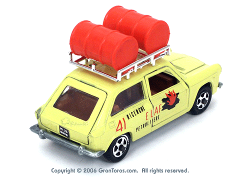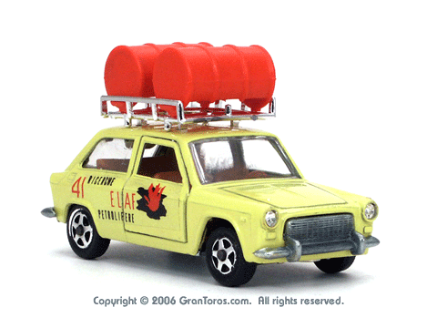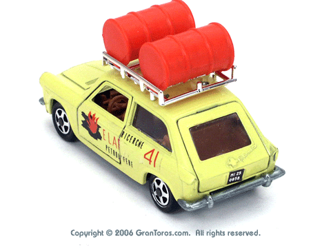 Left rear quarter view of a Mebetoys Primula Agip, Model #A-66. |